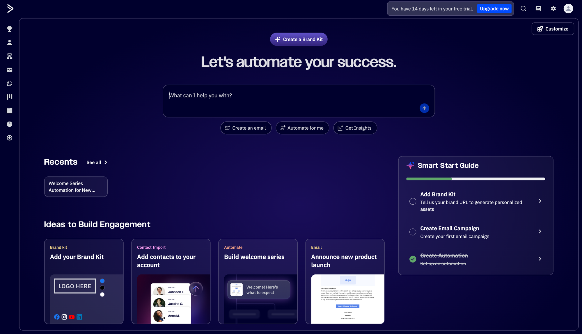 The pitch is simple: instead of manually building every workflow, trigger, and email sequence yourself, you describe what you want in plain English and the AI builds it for you. Traditional automation requires you to map out every step. Autonomous marketing means you set the goal and the platform figures out the path.
