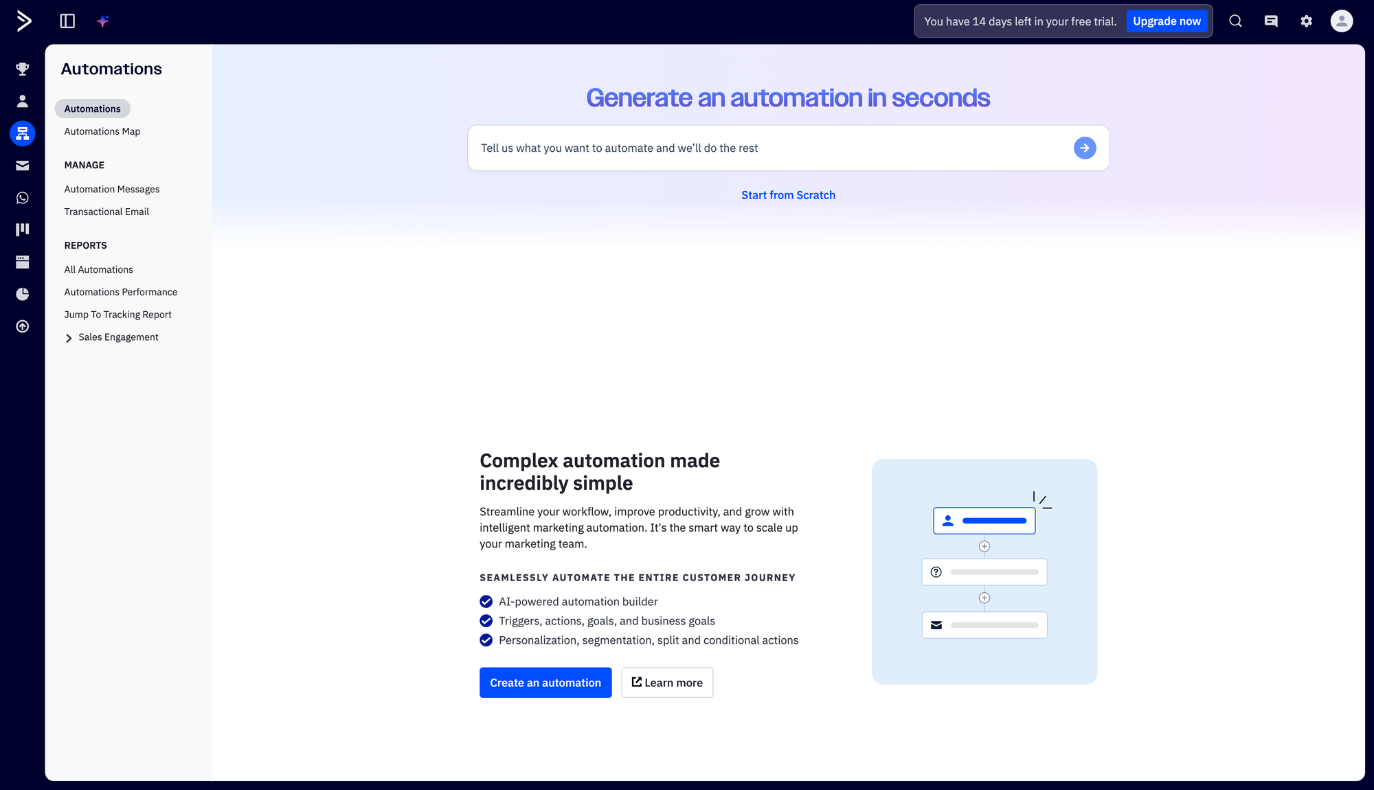 Try ActiveCampaign free for 14 days → No credit card required. Test the AI automation builder yourself and see what it builds for your business.
